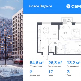 Строим кварталы для жизни с заботой о будущем. Предлагается 2-комнатная квартира комфорт-класса 54, 58 кв.м в корпусе 17 на 3 этаже, в ЖК «Новое Видное» Квартира без отделки. Доступность опции «отделка» и возможность комплектации мебелью и декором уточняйте у...