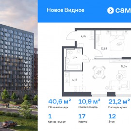 Строим кварталы для жизни с заботой о будущем. Предлагается 1-комнатная квартира комфорт-класса 40, 59 кв.м в корпусе 17 на 12 этаже, в ЖК «Новое Видное» Квартира без отделки. Доступность опции «отделка» и возможность комплектации мебелью и декором уточняйте у...