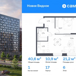 Строим кварталы для жизни с заботой о будущем. Предлагается 1-комнатная квартира комфорт-класса 40, 59 кв.м в корпусе 17 на 6 этаже, в ЖК «Новое Видное» Квартира без отделки. Доступность опции «отделка» и возможность комплектации мебелью и декором уточняйте у...