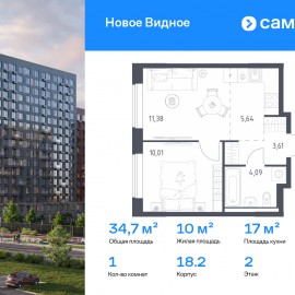 Строим кварталы для жизни с заботой о будущем. Предлагается 1-комнатная квартира комфорт-класса 34, 73 кв.м в корпусе 18.2 на 2 этаже, в ЖК «Новое Видное» Квартира с чистовой отделкой. Доступность дополнительных опций уточняйте у застройщика. Приобрести квартиру возможно по...