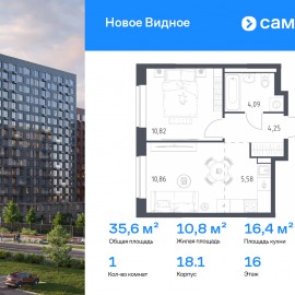 Строим кварталы для жизни с заботой о будущем. Предлагается 1-комнатная квартира комфорт-класса 35, 6 кв.м в корпусе 18.1 на 16 этаже, в ЖК «Новое Видное» Квартира с чистовой отделкой. Доступность дополнительных опций уточняйте у застройщика. Приобрести квартиру возможно по...