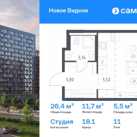 Строим кварталы для жизни с заботой о будущем. Предлагается квартира студия комфорт-класса 26, 39 кв.м в корпусе 18.1 на 11 этаже, в ЖК «Новое Видное» Квартира без отделки. Доступность опции «отделка» и возможность комплектации мебелью и декором уточняйте у...