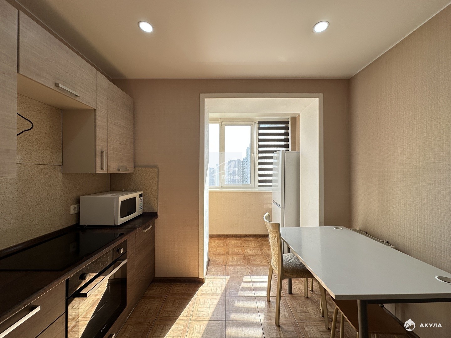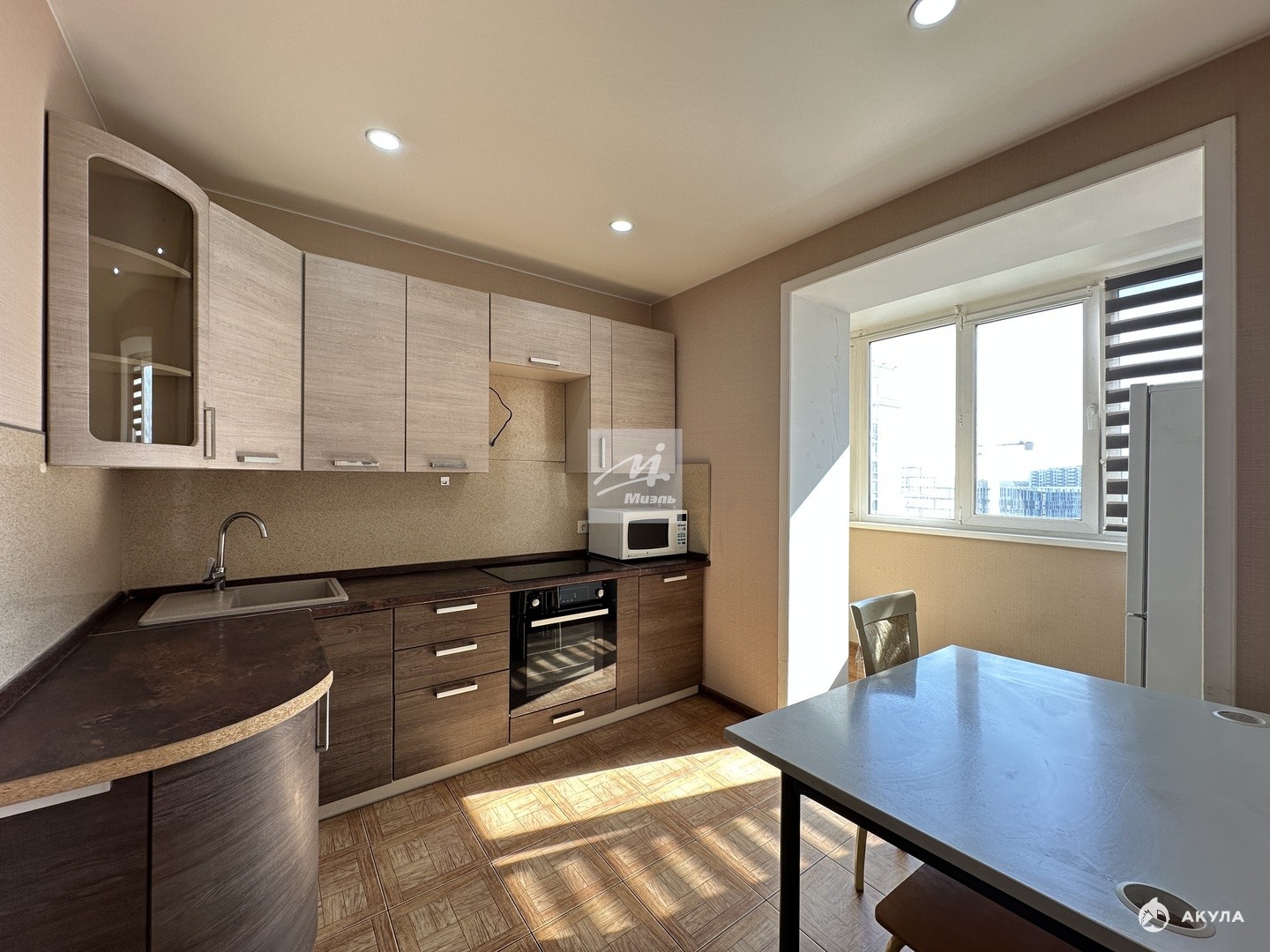 - на кухне застекленная лоджия, просторная комната с большим окном и удобной гардеробной