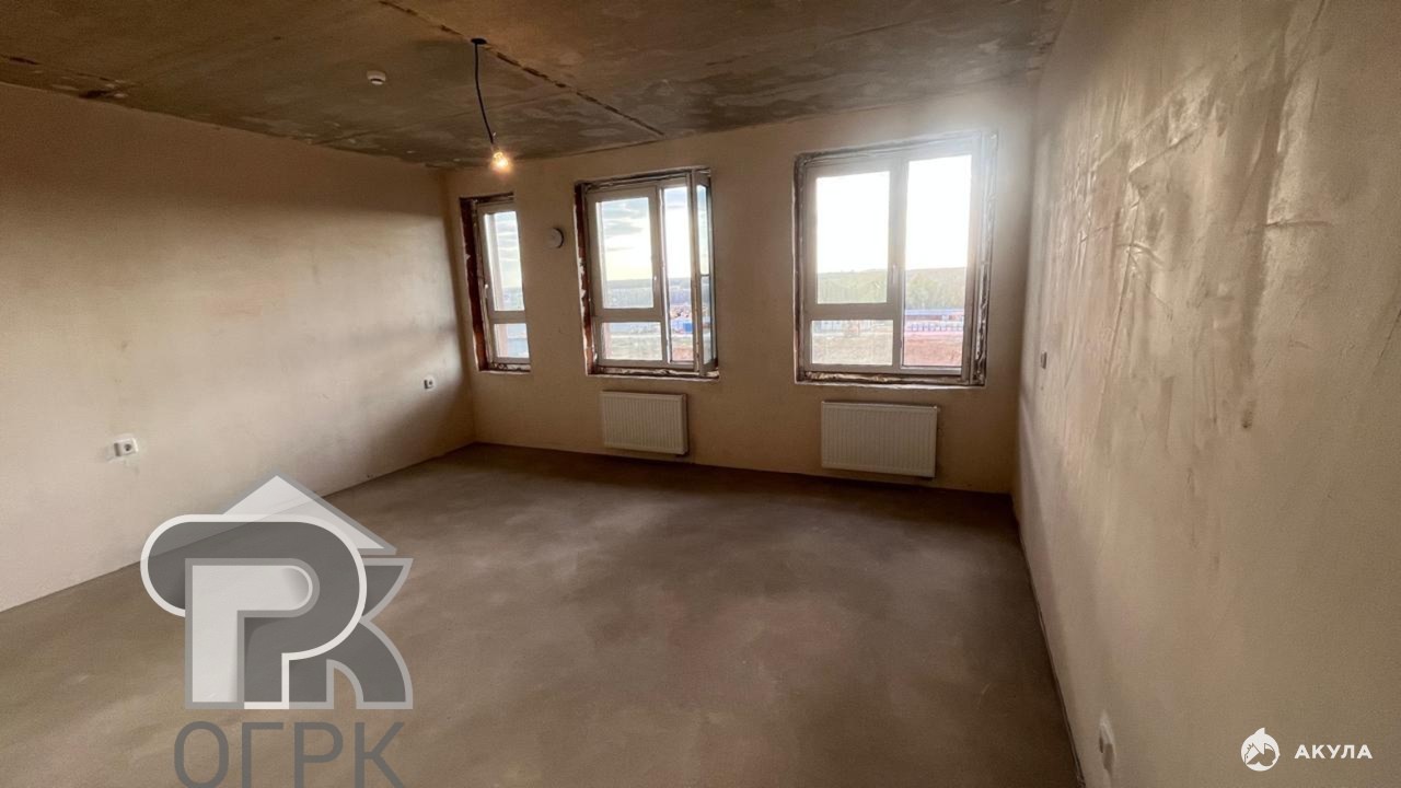 В квартире выполнена предчистовая отделка, все готово к финишной отделке: выровнен пол и стены, разведена электрика, установлены розетки, выключатели, радиаторы, приборы учета, пластиковые окна и входная дверь-сейф