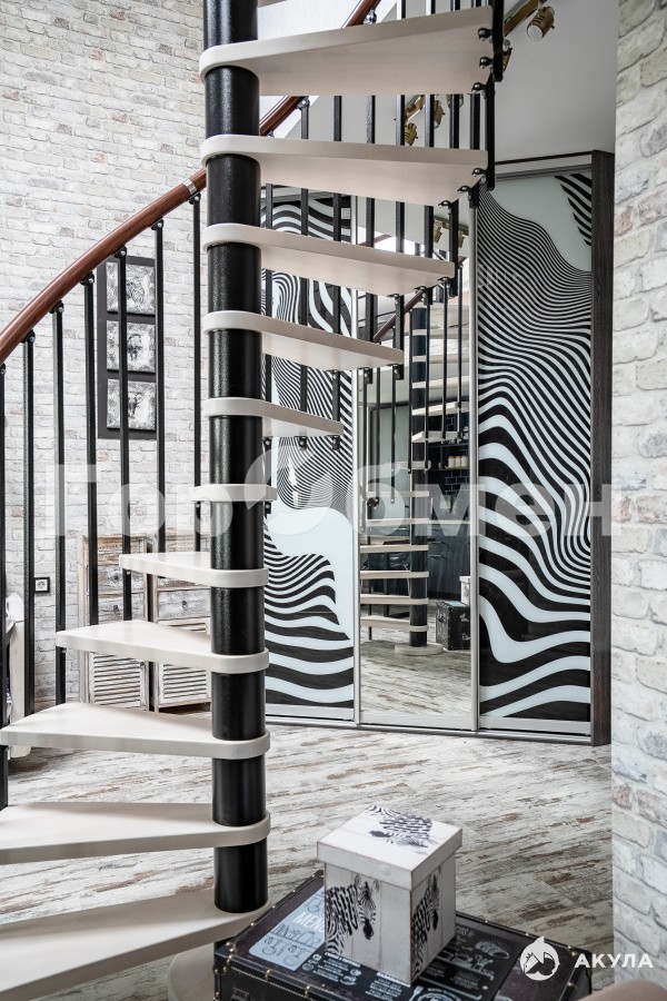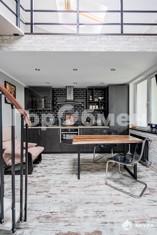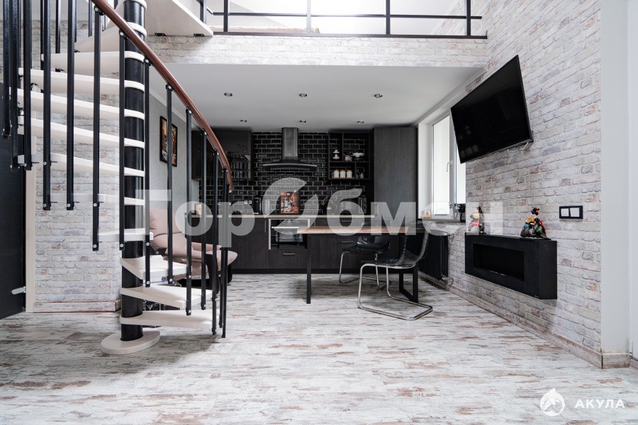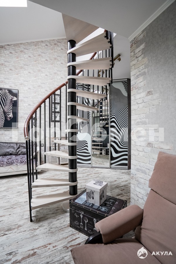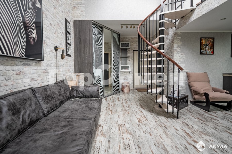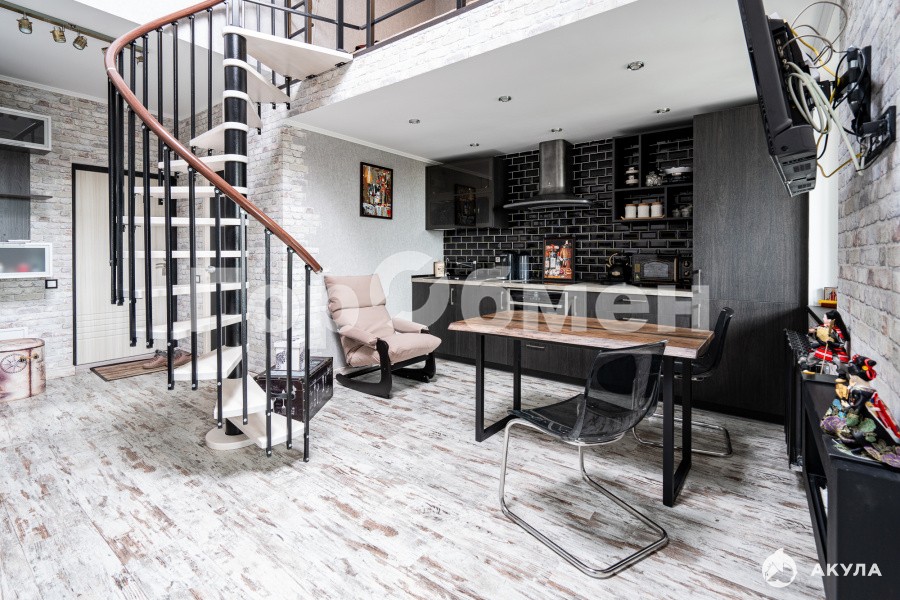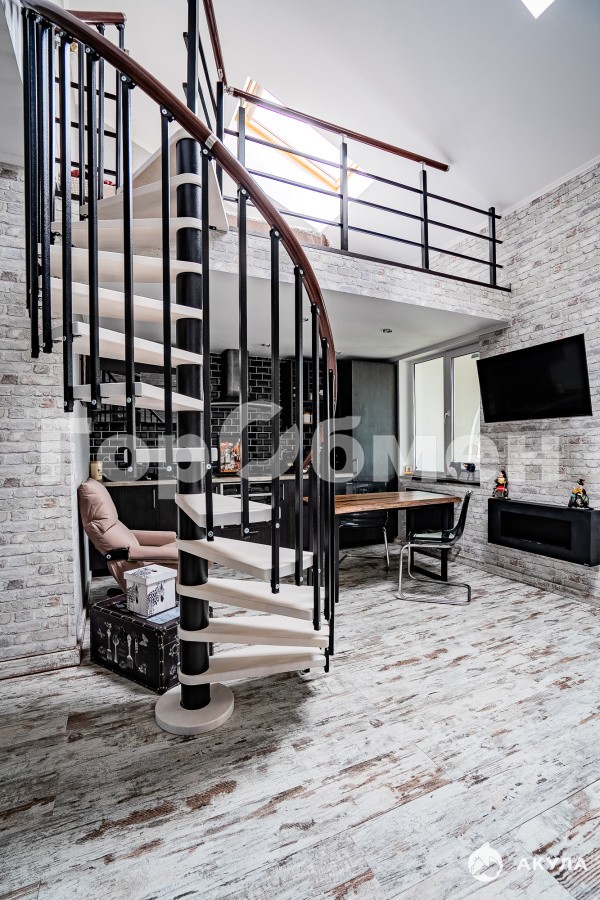 Эксклюзивная двухуровневая лофт-студия с мансардными окнами и винтовой лестницей.