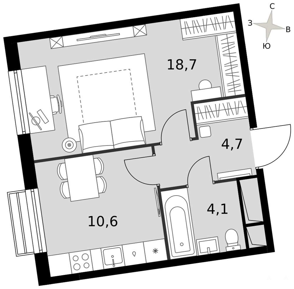Продаётся 1-к квартира номер 1481 общей площадью 38.1 кв.м. на 10-м этаже 11.1 этажного здания. Без отделки. Цена с учётом скидки.