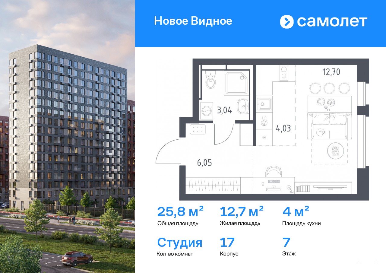 Строим кварталы для жизни с заботой о будущем. Предлагается квартира студия комфорт-класса 25, 82 кв.м в корпусе 17 на 7 этаже, в ЖК «Новое Видное»