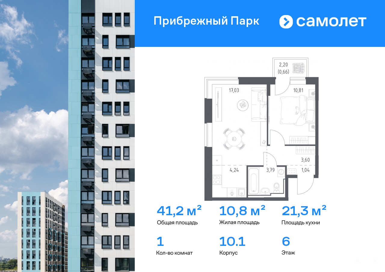 Строим кварталы для жизни с заботой о будущем. Предлагается 1-комнатная квартира комфорт-класса 41, 17 кв.м в корпусе 10.1 на 6 этаже, в ЖК «Прибрежный Парк»