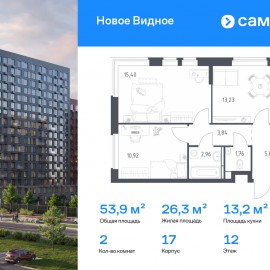 Строим кварталы для жизни с заботой о будущем. Предлагается 2-комнатная квартира комфорт-класса 53, 92 кв.м в корпусе 17 на 12 этаже, в ЖК «Новое Видное» Квартира без отделки. Доступность опции «отделка» и возможность комплектации мебелью и декором уточняйте у...
