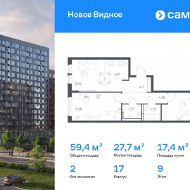 Строим кварталы для жизни с заботой о будущем. Предлагается 2-комнатная квартира комфорт-класса 59, 38 кв.м в корпусе 17 на 9 этаже, в ЖК «Новое Видное» Квартира без отделки. Доступность опции «отделка» и возможность комплектации мебелью и декором уточняйте у...