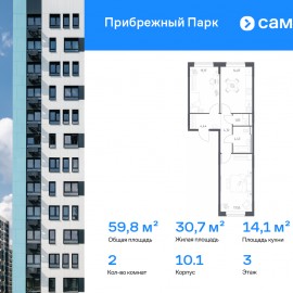 Строим кварталы для жизни с заботой о будущем. Предлагается 2-комнатная квартира комфорт-класса 59, 81 кв.м в корпусе 10.1 на 16 этаже, в ЖК «Прибрежный Парк» Квартира с чистовой отделкой. Доступность дополнительных опций уточняйте у застройщика. Приобрести квартиру возможно по...
