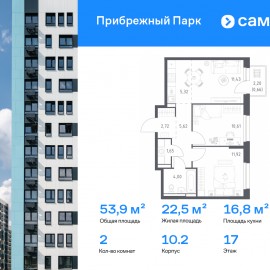 Строим кварталы для жизни с заботой о будущем. Предлагается 2-комнатная квартира комфорт-класса 53, 93 кв.м в корпусе 10.2 на 17 этаже, в ЖК «Прибрежный Парк» Квартира без отделки. Доступность опции «отделка» и возможность комплектации мебелью и декором уточняйте у...