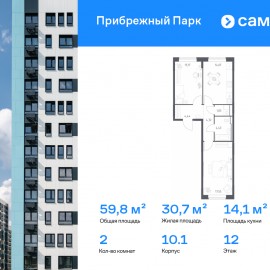 Строим кварталы для жизни с заботой о будущем. Предлагается 2-комнатная квартира комфорт-класса 59, 81 кв.м в корпусе 10.1 на 12 этаже, в ЖК «Прибрежный Парк» Квартира с чистовой отделкой. Доступность дополнительных опций уточняйте у застройщика. Приобрести квартиру возможно по...