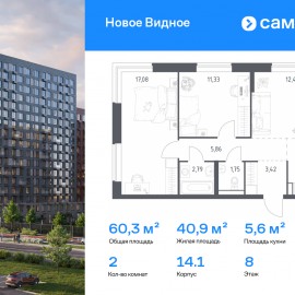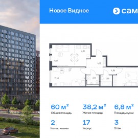 Строим кварталы для жизни с заботой о будущем. Предлагается 2-комнатная квартира комфорт-класса 59, 38 кв.м в корпусе 17 на 11 этаже, в ЖК «Новое Видное» Квартира без отделки. Доступность опции «отделка» и возможность комплектации мебелью и декором уточняйте у...