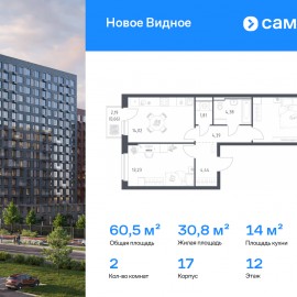 Строим кварталы для жизни с заботой о будущем. Предлагается 2-комнатная квартира комфорт-класса 60, 48 кв.м в корпусе 17 на 12 этаже, в ЖК «Новое Видное» Квартира без отделки. Доступность опции «отделка» и возможность комплектации мебелью и декором уточняйте у...