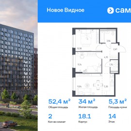 Строим кварталы для жизни с заботой о будущем. Предлагается 2-комнатная квартира комфорт-класса 52, 35 кв.м в корпусе 18.1 на 14 этаже, в ЖК «Новое Видное» Квартира с чистовой отделкой. Доступность дополнительных опций уточняйте у застройщика. Приобрести квартиру возможно по...