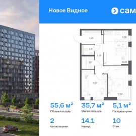 Строим кварталы для жизни с заботой о будущем. Предлагается 2-комнатная квартира комфорт-класса 55, 6 кв.м в корпусе 14.1 на 10 этаже, в ЖК «Новое Видное» Квартира без отделки. Доступность опции «отделка» и возможность комплектации мебелью и декором уточняйте у...