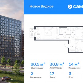 Строим кварталы для жизни с заботой о будущем. Предлагается 2-комнатная квартира комфорт-класса 60, 04 кв.м в корпусе 17 на 3 этаже, в ЖК «Новое Видное» Квартира без отделки. Доступность опции «отделка» и возможность комплектации мебелью и декором уточняйте у...