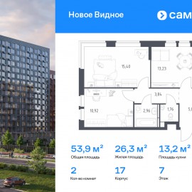 Строим кварталы для жизни с заботой о будущем. Предлагается 2-комнатная квартира комфорт-класса 53, 92 кв.м в корпусе 17 на 7 этаже, в ЖК «Новое Видное» Квартира без отделки. Доступность опции «отделка» и возможность комплектации мебелью и декором уточняйте у...