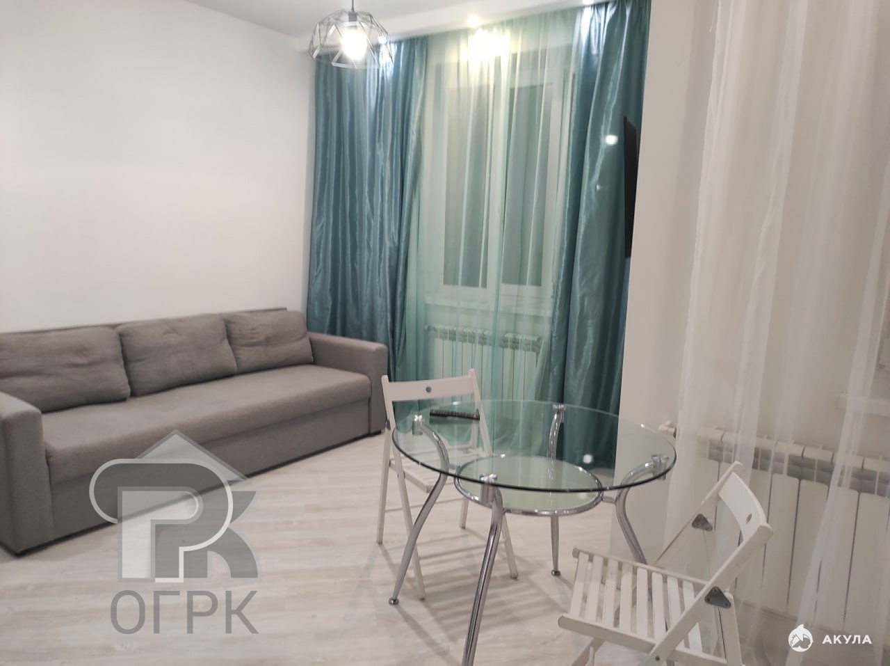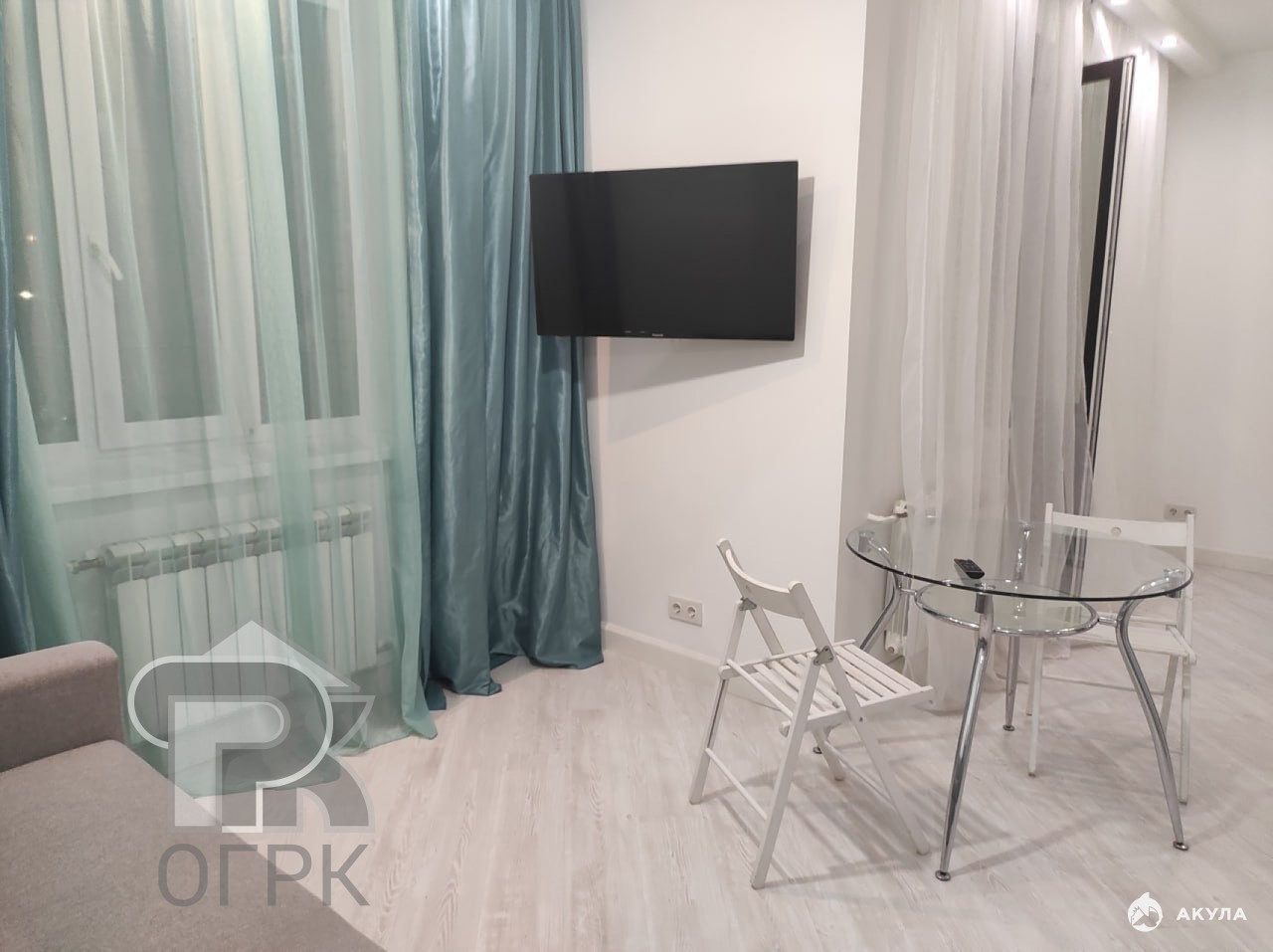 Кухня-гостиная и небольшая спальня. Кухонная зона оснащена необходимой бытовой техникой: холодильником, варочной панелью, микроволновой печью. Все остается в подарок покупателям.
