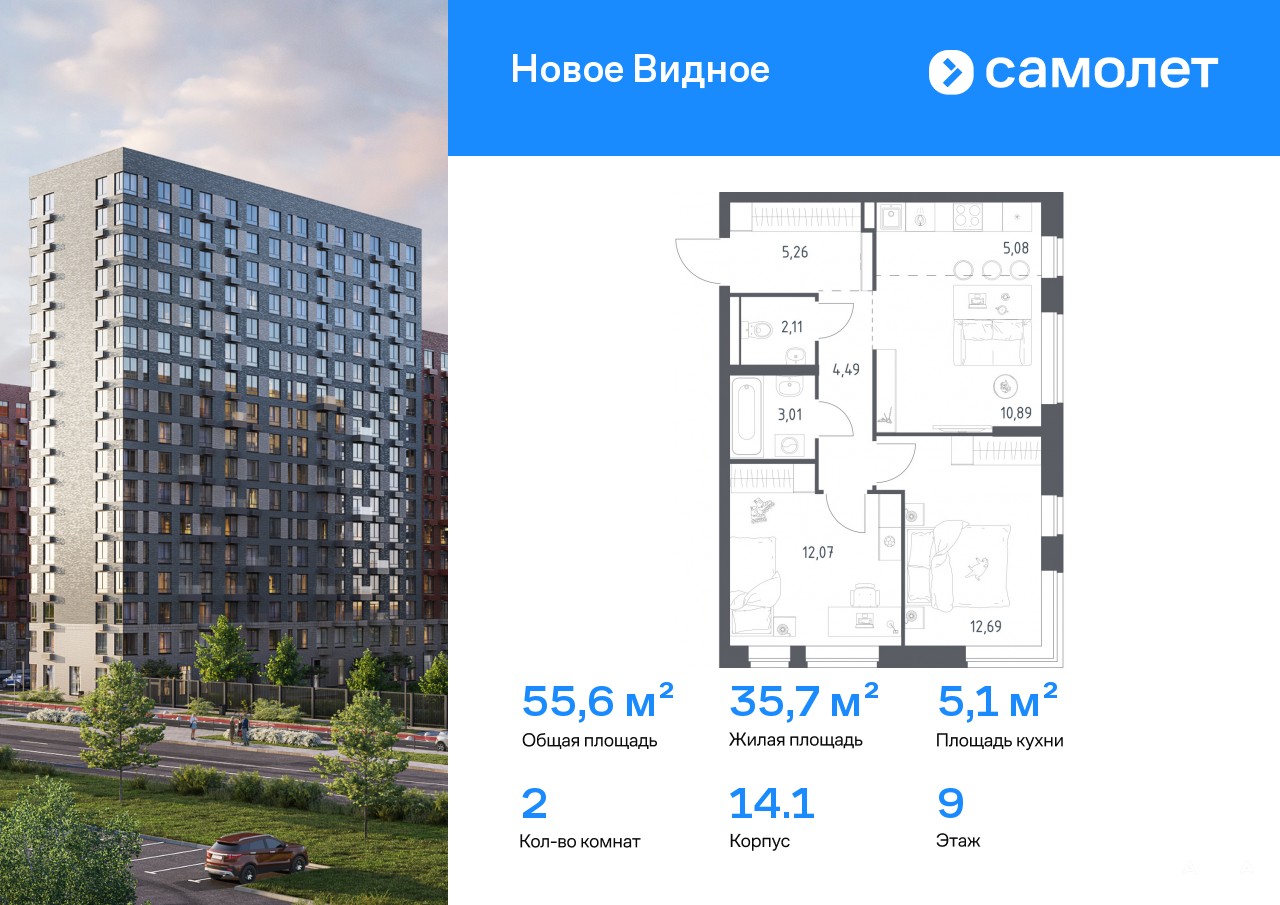 Строим кварталы для жизни с заботой о будущем. Предлагается 2-комнатная квартира комфорт-класса 55, 6 кв.м в корпусе 14.1 на 9 этаже, в ЖК «Новое Видное»