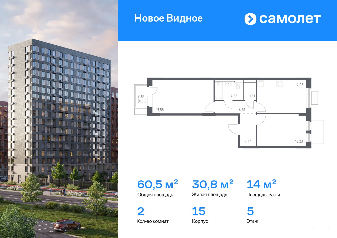 Строим кварталы для жизни с заботой о будущем. Предлагается 2-комнатная квартира комфорт-класса 60, 48 кв.м в корпусе 15 на 5 этаже, в ЖК «Новое Видное»