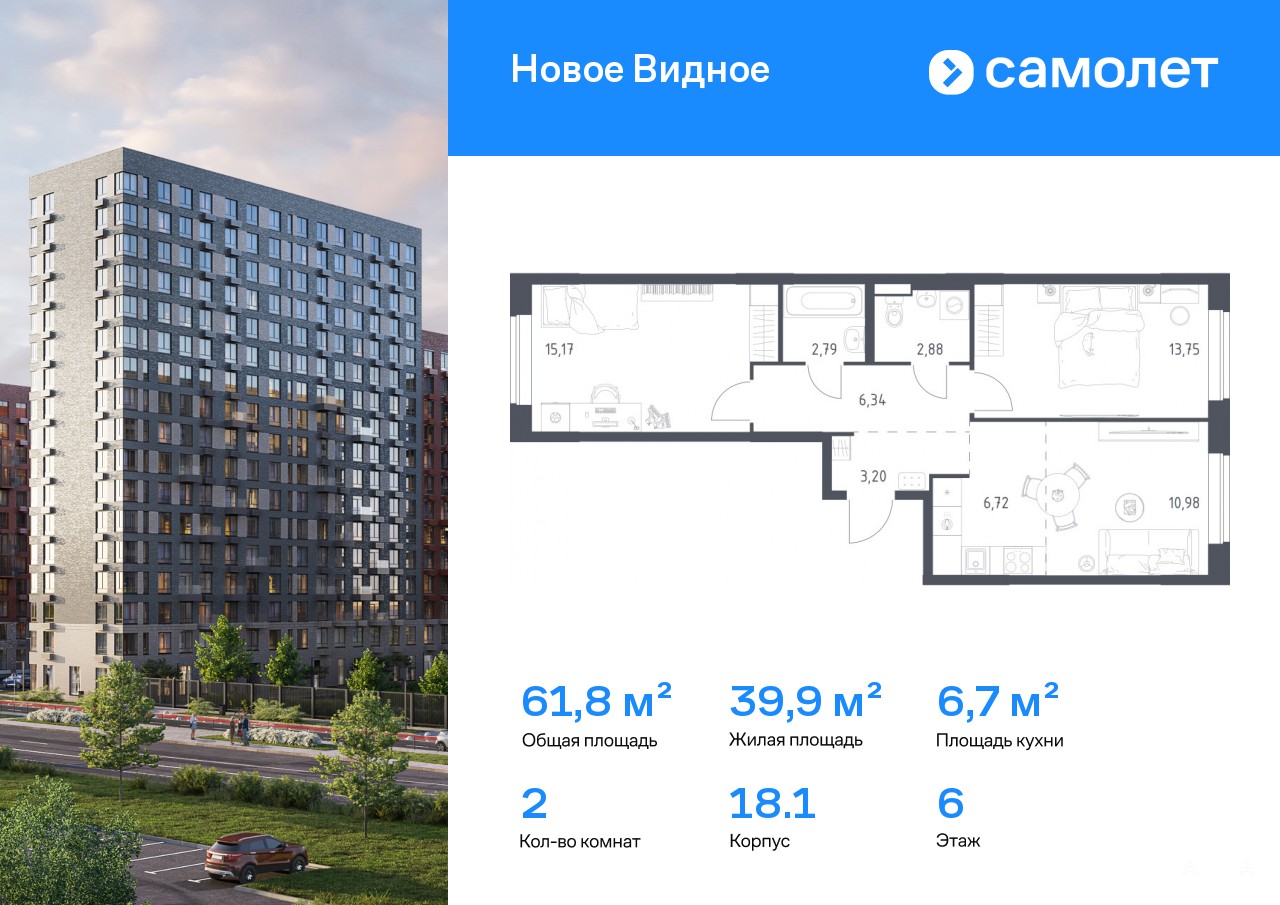 Строим кварталы для жизни с заботой о будущем. Предлагается 2-комнатная квартира комфорт-класса 61, 83 кв.м в корпусе 18.1 на 6 этаже, в ЖК «Новое Видное»