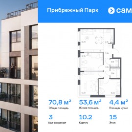 Строим кварталы для жизни с заботой о будущем. Предлагается 3-комнатная квартира комфорт-класса 70, 79 кв.м в корпусе 10.2 на 15 этаже, в ЖК «Прибрежный Парк» Квартира без отделки. Доступность опции «отделка» и возможность комплектации мебелью и декором уточняйте у...