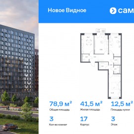 Строим кварталы для жизни с заботой о будущем. Предлагается 3-комнатная квартира комфорт-класса 78, 23 кв.м в корпусе 17 на 3 этаже, в ЖК «Новое Видное» Квартира без отделки. Доступность опции «отделка» и возможность комплектации мебелью и декором уточняйте у...