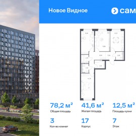 Строим кварталы для жизни с заботой о будущем. Предлагается 3-комнатная квартира комфорт-класса 78, 23 кв.м в корпусе 17 на 7 этаже, в ЖК «Новое Видное» Квартира без отделки. Доступность опции «отделка» и возможность комплектации мебелью и декором уточняйте у...