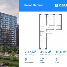 Строим кварталы для жизни с заботой о будущем. Предлагается 3-комнатная квартира комфорт-класса 78, 23 кв.м в корпусе 17 на 5 этаже, в ЖК «Новое Видное» Квартира без отделки. Доступность опции «отделка» и возможность комплектации мебелью и декором уточняйте у...
