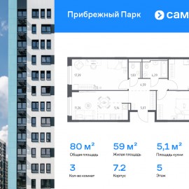 Строим кварталы для жизни с заботой о будущем. Предлагается 3-комнатная квартира комфорт-класса 79, 96 кв.м в корпусе 7.2 на 5 этаже, в ЖК «Прибрежный Парк» Квартира с чистовой отделкой. Доступность дополнительных опций уточняйте у застройщика. Приобрести квартиру возможно по...