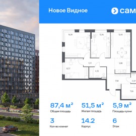 Строим кварталы для жизни с заботой о будущем. Предлагается 3-комнатная квартира комфорт-класса 87, 41 кв.м в корпусе 14.1 на 6 этаже, в ЖК «Новое Видное» Квартира без отделки. Доступность опции «отделка» и возможность комплектации мебелью и декором уточняйте у...