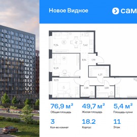 Строим кварталы для жизни с заботой о будущем. Предлагается 3-комнатная квартира комфорт-класса 76, 85 кв.м в корпусе 18.2 на 11 этаже, в ЖК «Новое Видное» Квартира без отделки. Доступность опции «отделка» и возможность комплектации мебелью и декором уточняйте у...