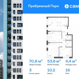 Строим кварталы для жизни с заботой о будущем. Предлагается 3-комнатная квартира комфорт-класса 70, 79 кв.м в корпусе 10.2 на 16 этаже, в ЖК «Прибрежный Парк» Квартира без отделки. Доступность опции «отделка» и возможность комплектации мебелью и декором уточняйте у...