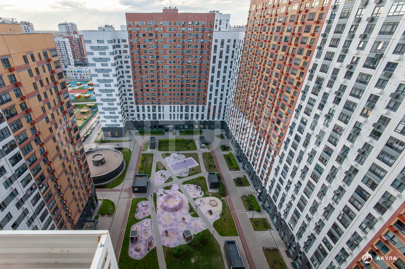 Во дворе оборудованные детские и спортивные площадки, прогулочные зоны. В пешей доступности — супермаркеты и фитнес-клубы.