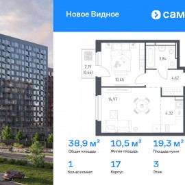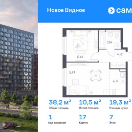 Строим кварталы для жизни с заботой о будущем. Предлагается 1-комнатная квартира комфорт-класса 38, 87 кв.м в корпусе 17 на 3 этаже, в ЖК «Новое Видное» Квартира без отделки. Доступность опции «отделка» и возможность комплектации мебелью и декором уточняйте у...
