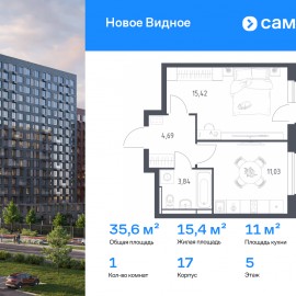 Строим кварталы для жизни с заботой о будущем. Предлагается 1-комнатная квартира комфорт-класса 35, 64 кв.м в корпусе 17 на 5 этаже, в ЖК «Новое Видное» Квартира без отделки. Доступность опции «отделка» и возможность комплектации мебелью и декором уточняйте у...