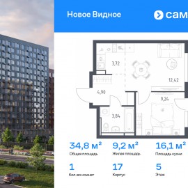 Строим кварталы для жизни с заботой о будущем. Предлагается 1-комнатная квартира комфорт-класса 34, 78 кв.м в корпусе 17 на 5 этаже, в ЖК «Новое Видное» Квартира без отделки. Доступность опции «отделка» и возможность комплектации мебелью и декором уточняйте у...
