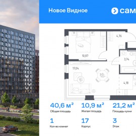 Строим кварталы для жизни с заботой о будущем. Предлагается 1-комнатная квартира комфорт-класса 40, 91 кв.м в корпусе 18.1 на 16 этаже, в ЖК «Новое Видное» Квартира с чистовой отделкой. Доступность дополнительных опций уточняйте у застройщика. Приобрести квартиру возможно по...