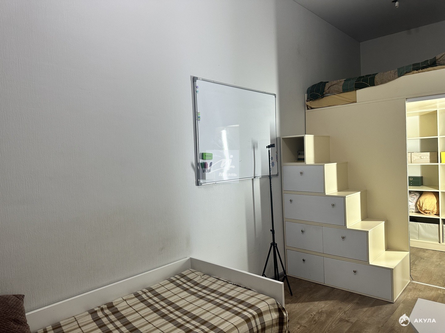 Высокие потолки, 3, 4 метра, панорамные окна. Полы ламинат, натяжные потолки, много света. Есть антресоль со спальным местом.